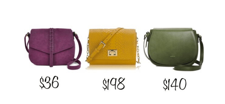 Why stick to the safe blacks and browns when you can spice up your purses with a colorful cross body.