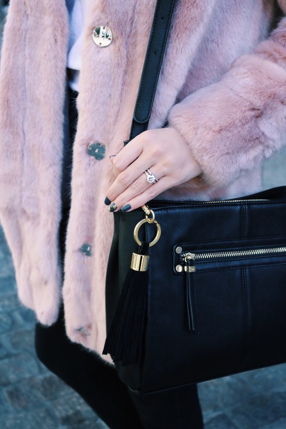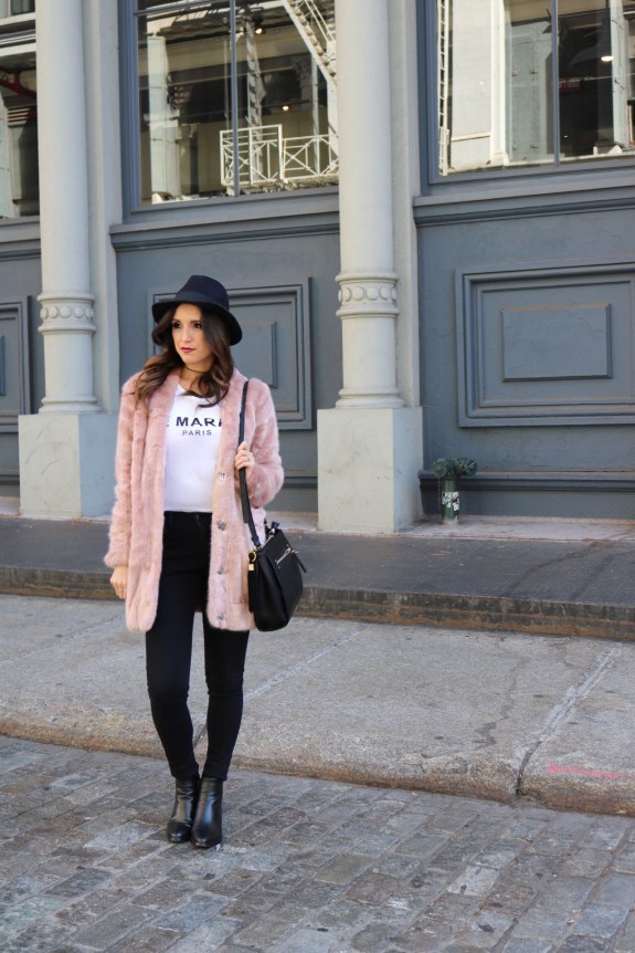 Well that’s not entirely true because these pictures were taken last Friday. I was so excited to have my girl friend Alyssa in town last weekend. I took Friday off to explore Soho and the Financial District. It was our first chilly day in NYC and this baby pink faux fur jacket was just warm enough to allow me to power through a long day of eating and drinking. I mean heaven forbid I do anything else when friends come to visit.