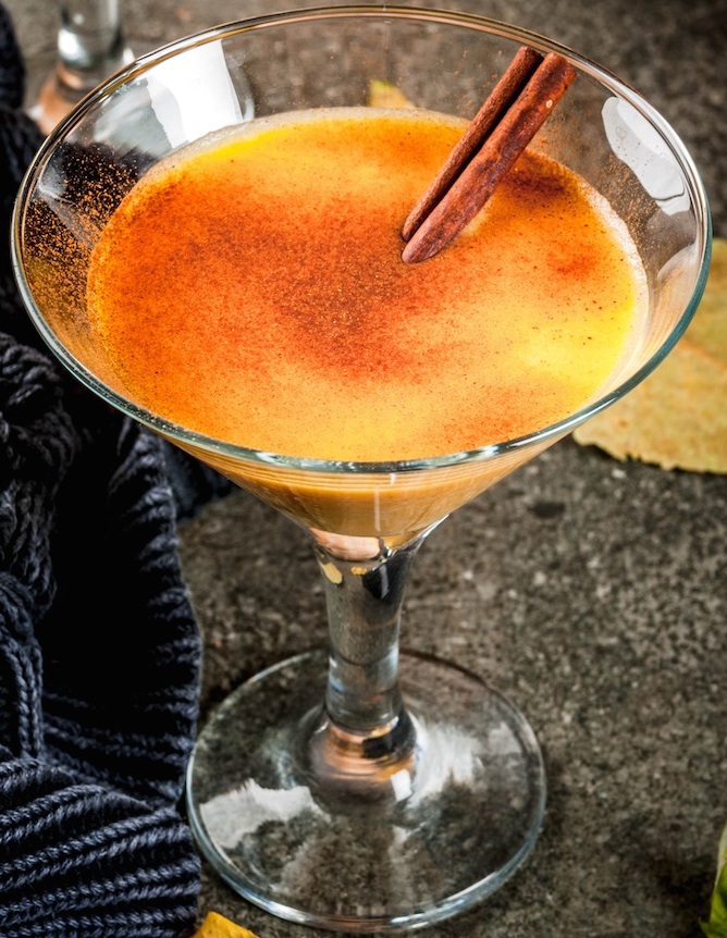 Add around 1 C. of ice, vodka, and pumpkin liquor to a cocktail shaker.